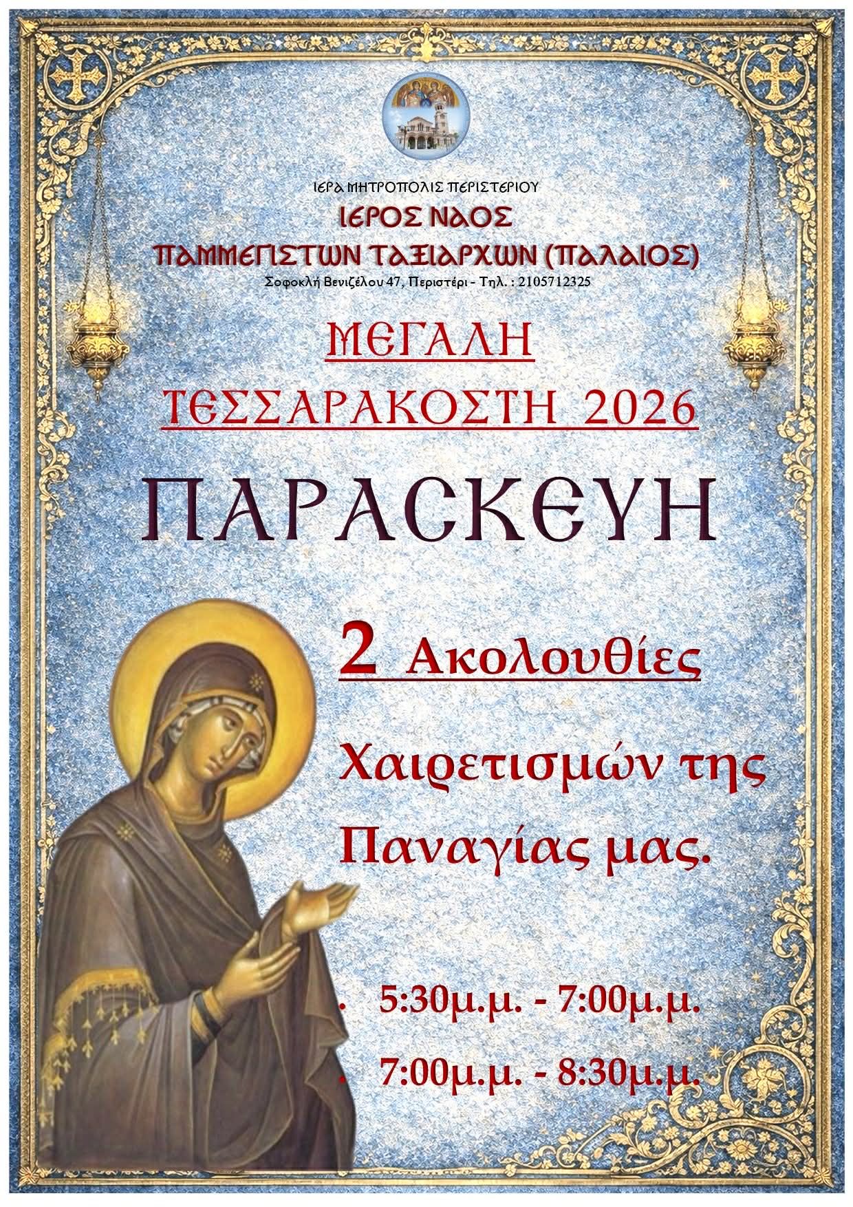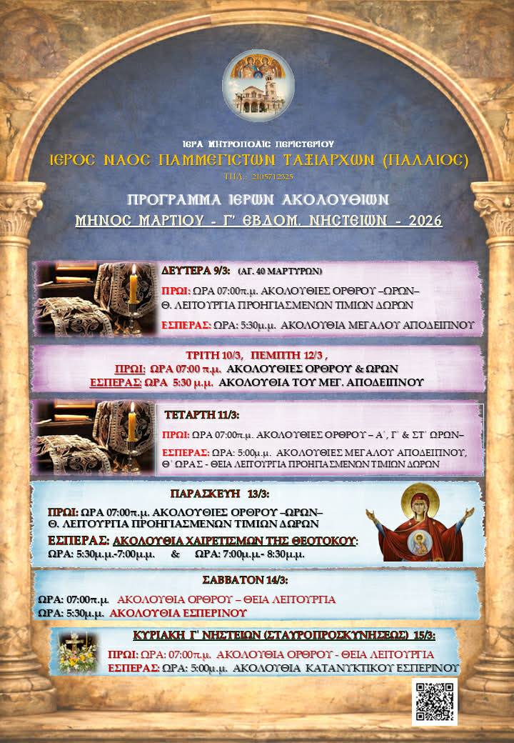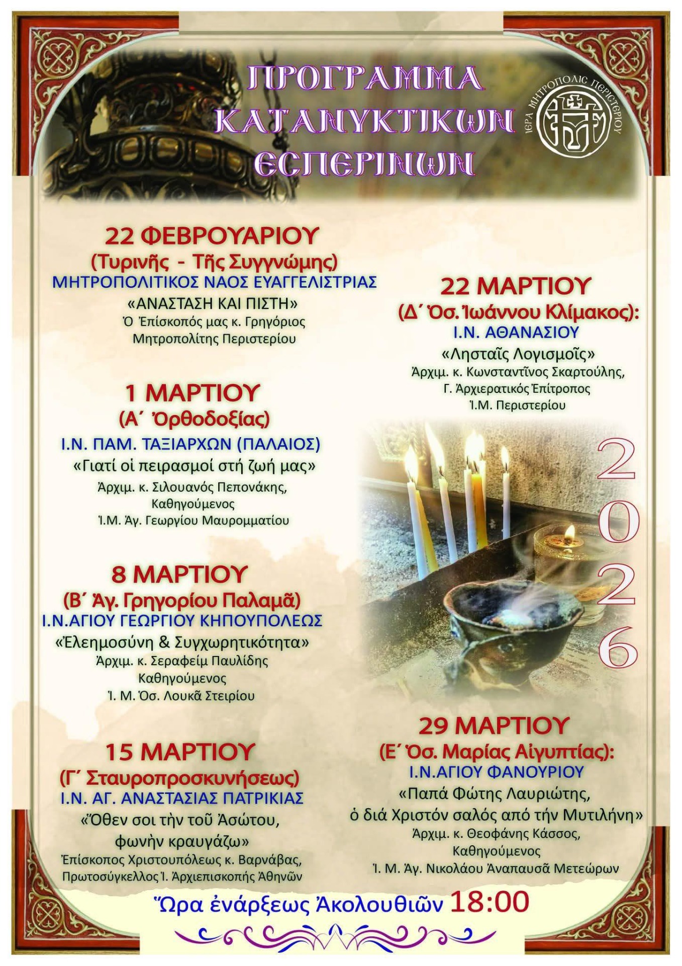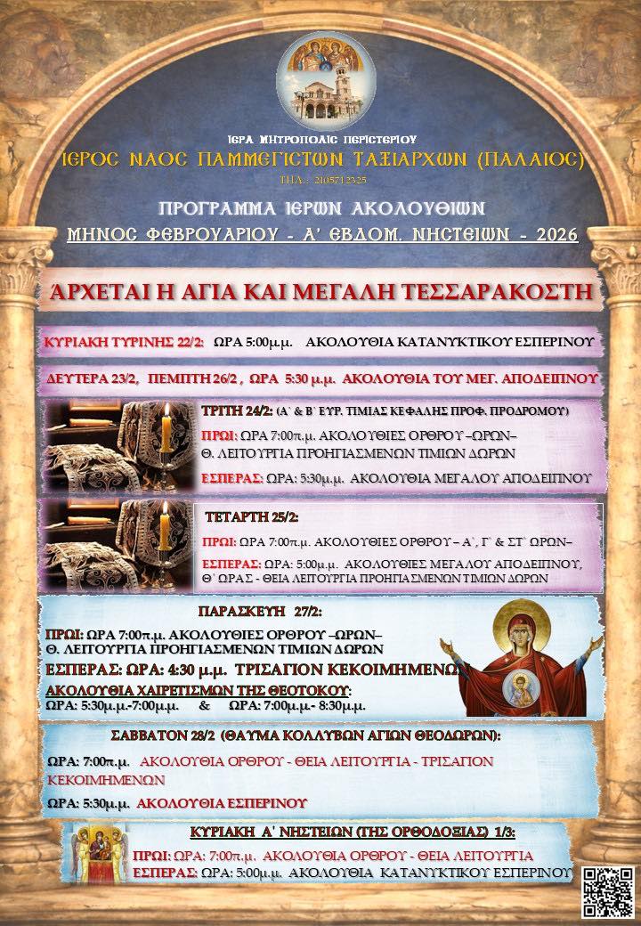 Πρόγραμμα Α΄ Εβδομάδας Νηστειών 2026