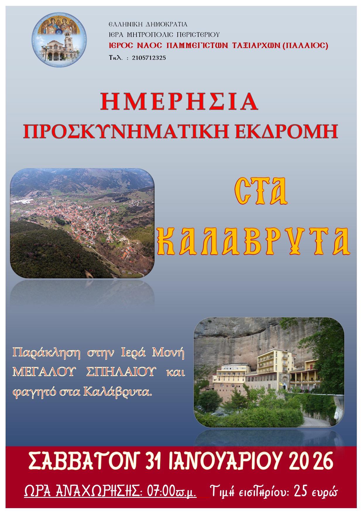 Ανακοίνωση Ημερήσια Προσκυνηματική Εκδρομή στα Καλάβρυτα