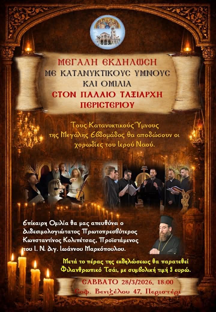 Κατανυκτικοί Εκδήλωση με Ύμνους Μεγάλης Εβδομάδας και Ομιλία