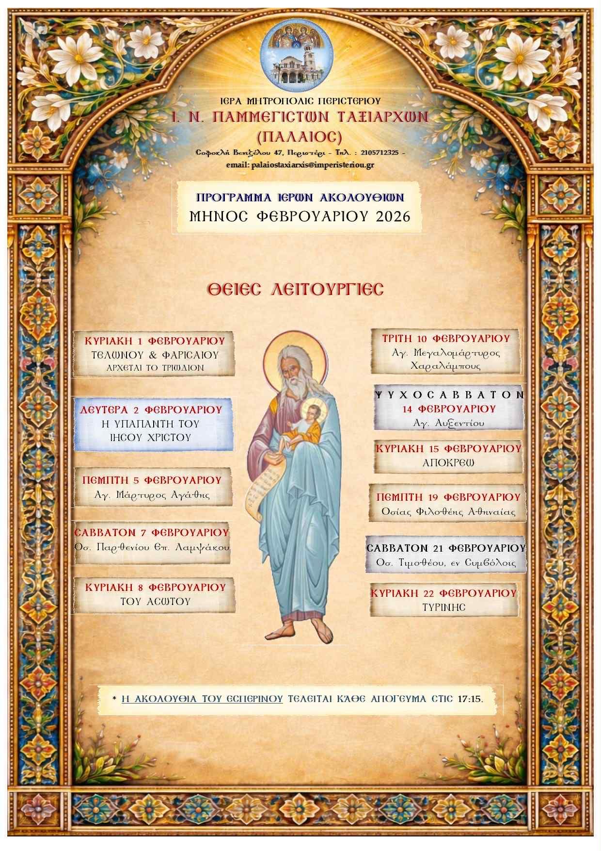 Πρόγραμμα Λειτουργιών Φεβρουαρίου
